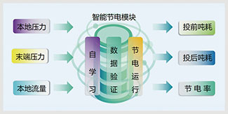 智能節(jié)電通過專利技術,根據供水流量變化,自動優(yōu)化供水壓力, 在保障最遠(最不利)用戶用水的基礎上,最大限度降低 出口供水壓力,降低能耗,實現精準節(jié)能。 |
